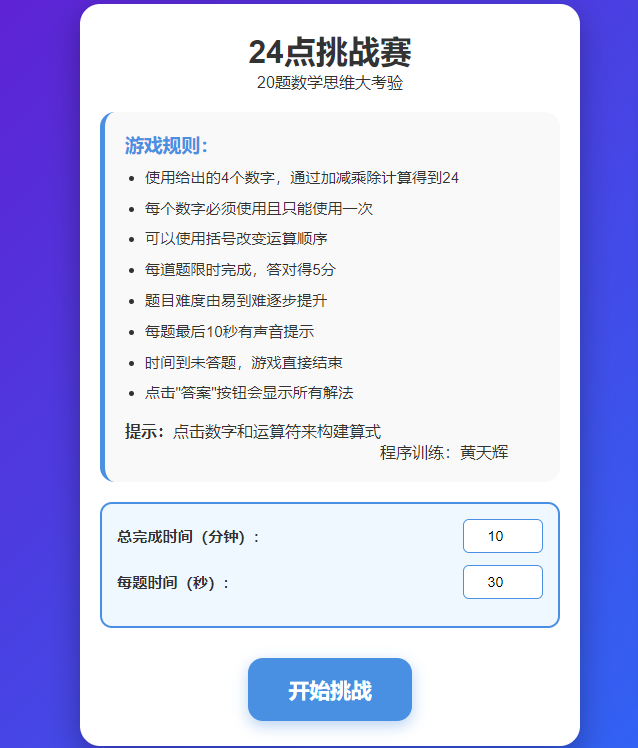 小学生24点游戏 创作者:飞飞老师